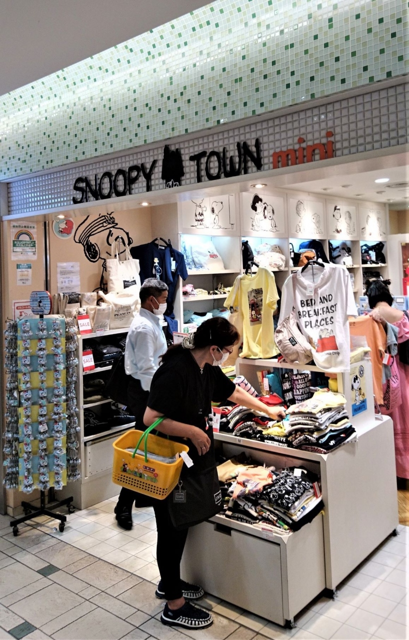 東京駅の駅中商店街のひとつ東京一番街の地下にはキャラクターストリートという各種のマスコットキャラクターのグッズショップが一堂に会するエリアがある。コロナ以前は観光客でたいそう賑わっていたが、今はそうでもない。ここはその中で人気キャラクタースヌーピーの店。