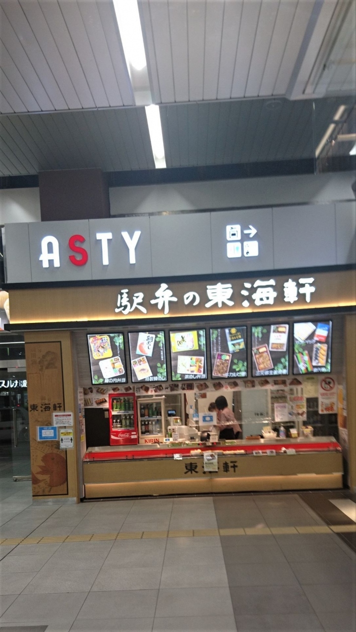 静岡駅の駅舎コンコース南側にある弁当屋さん東海軒の売店。種類が多いが、私の好みは鯛めしと幕の内弁当。今回は幕の内弁当でも高い方が売りきれていたのが残念。ここの幕の内弁当にはわさび漬けが付いているが静岡らしい。