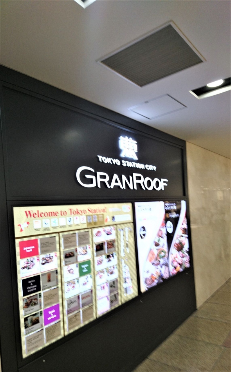 東京駅の八重洲口は再開発して両サイドが高層ビルで中央部は環境(風通し)を考慮して低層の建物になったので、その形状を模した名称の商業施設がグランルーフ。飲食店が多いゾーンで、歩行デッキもある開放的な構造になっている。