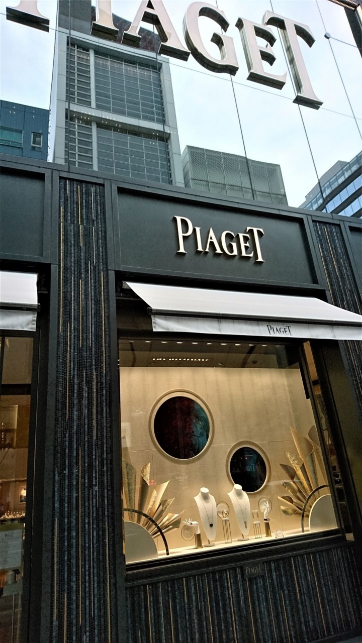 海外旅行がコロナで遠のく日々が続いて久しい。銀座に用があって出た帰りに、このエリアには散在する高級ブランドの店先を覗くのが、最近では海外旅行の代償行為になった。このピアジェの店もそうしたウインドウショッピングで見た。