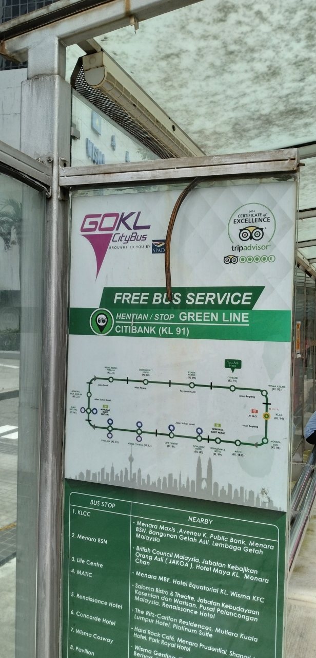 このバスはクアラルンプール市内を巡回する無料バスで、誰でも無料で乗車することができます。2021年11月から環境に配慮した電気式になり、緑と水色の新しい車体とデザインになりました。時間に余裕ある観光客には便利な市内の移動手段です。