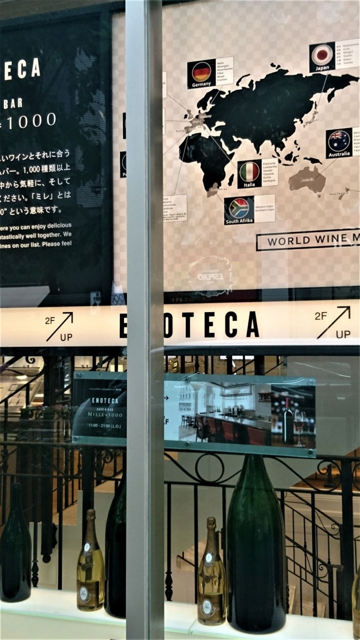 エノテカは全国チェーンの高級ワインショップである。この店は銀座みゆき通りの銀座6丁目の角にある1階がジュエリーショップの2階にある。めずらしいイートインを併設したショップ。ワイン好きの方へのギフトを選ぶには最適。