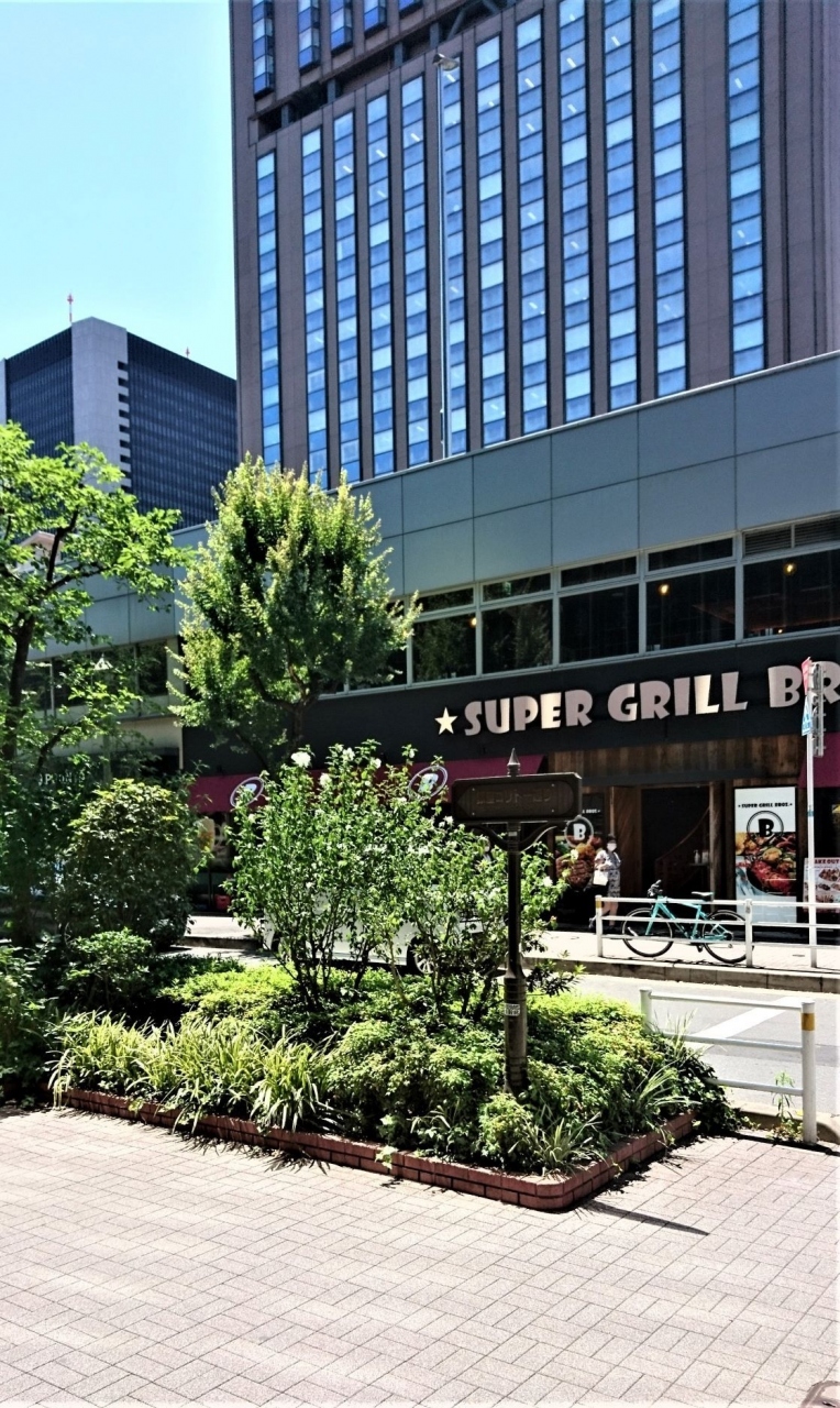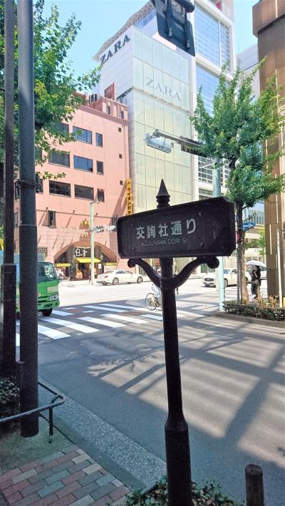 西銀座の高速道路(首都高速)の下が2階建てのビルになっており、その中には飲食店がずらりとテナントとして入っている。その通りをコリドー街という。手前の道路は一方通行だが、パーキングメーターが設置されて駐車できる。