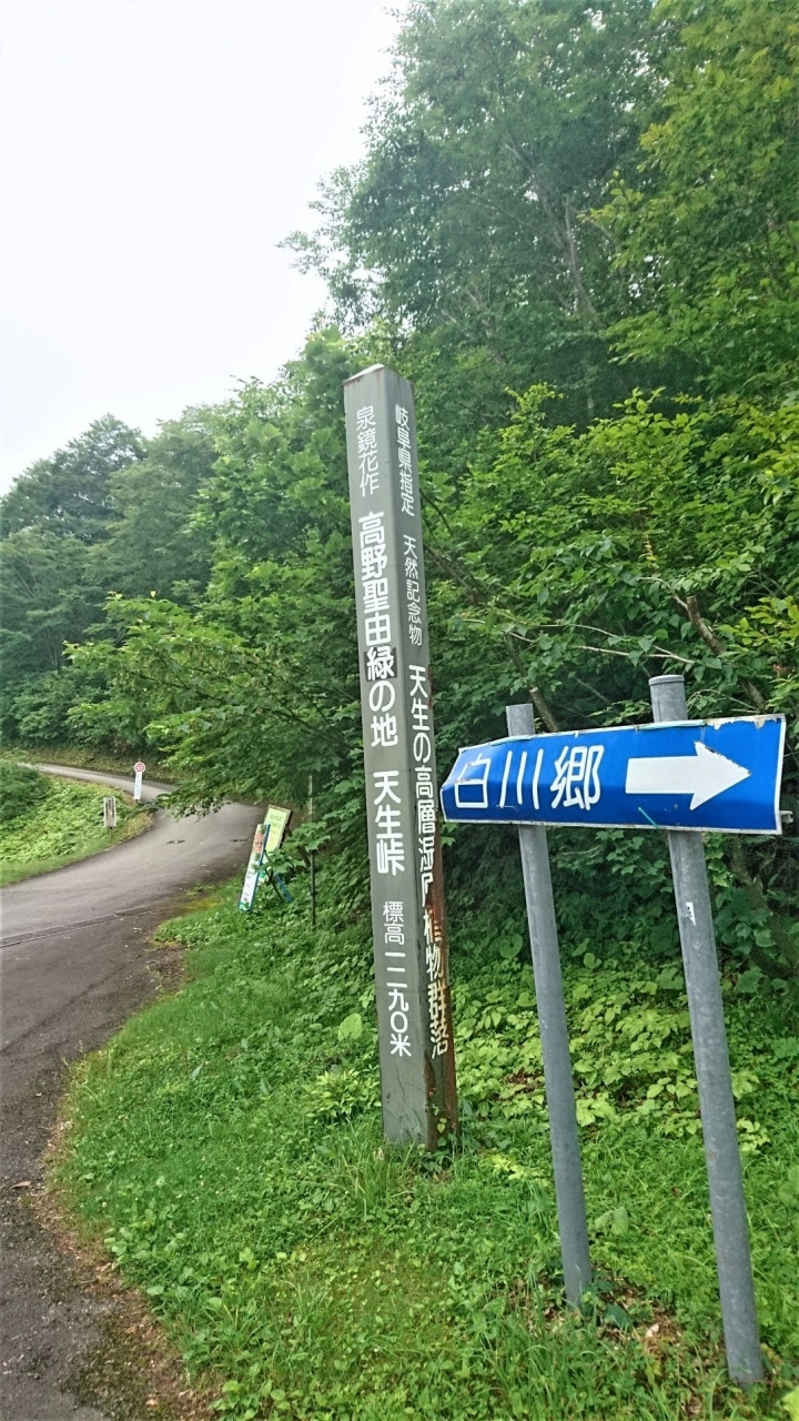 高山から白川郷へ行く際に通った国道360号線の峠。この国道は急峻な山道を自動車が通れる程度に広げたどんでもないけもの道で、よほどの物好き以外には推奨できない。その分水嶺になるこの峠はケータイの電波も通じない。夏季のみ行ける場所。