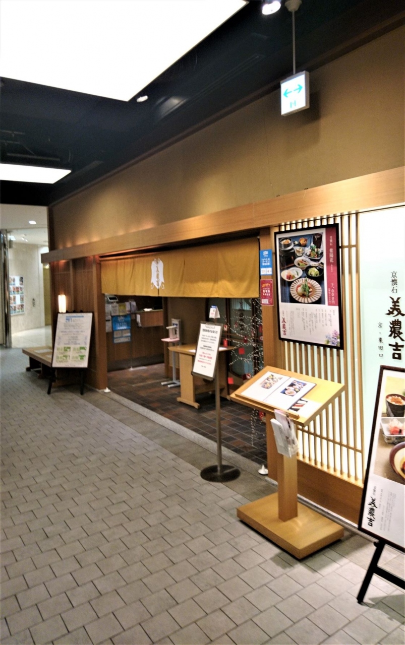 美濃吉は高級和食店のチェーン店で、デパート内のレストラン街にお店が多い。この店は千葉市の千葉駅前の大型デパート千葉そごうの10階のレストラン街で最も奥まった場所にある。個室もあるので会食にも利用できる。