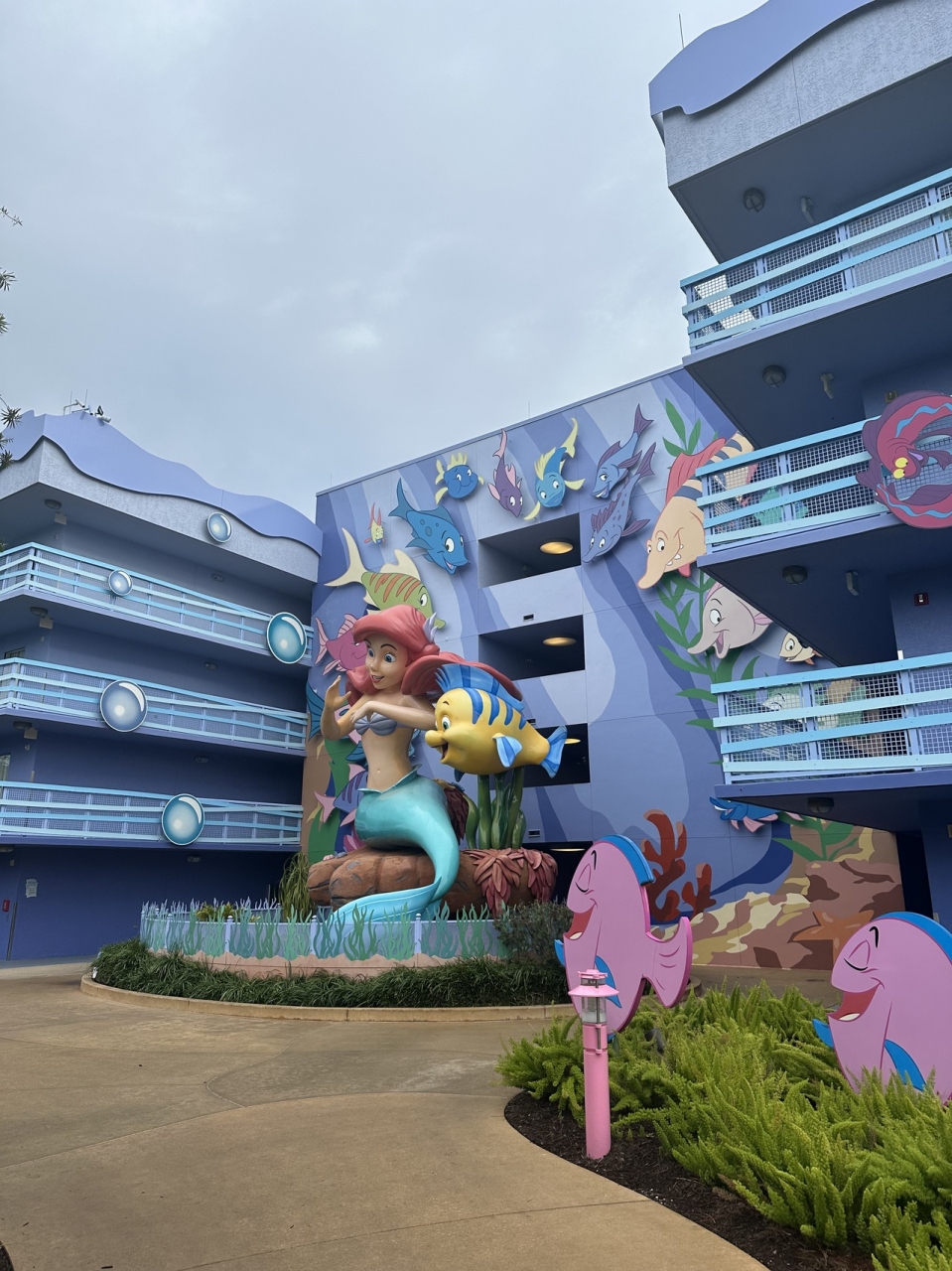 アートオブアニメーションのホテルに泊まりました。アリエルが大好きで念願のホテルに泊まれて嬉しさいっぱいでした。行ってみると大きなキャラクターのオブジェがお迎えしてくれて大興奮で他にもニモフレンズやカーズライオンキングなどのキャラクターもいてまるでホテルがテーマパークでした!ホテルのエントランスまではアリエル棟は離れていましたが道中はお散歩できてとても楽しかったです!ホテル内のお土産屋さんもレストランも全て大満足でした!何よりかわいいアリエルのお部屋には何度帰っても嬉しかったです!