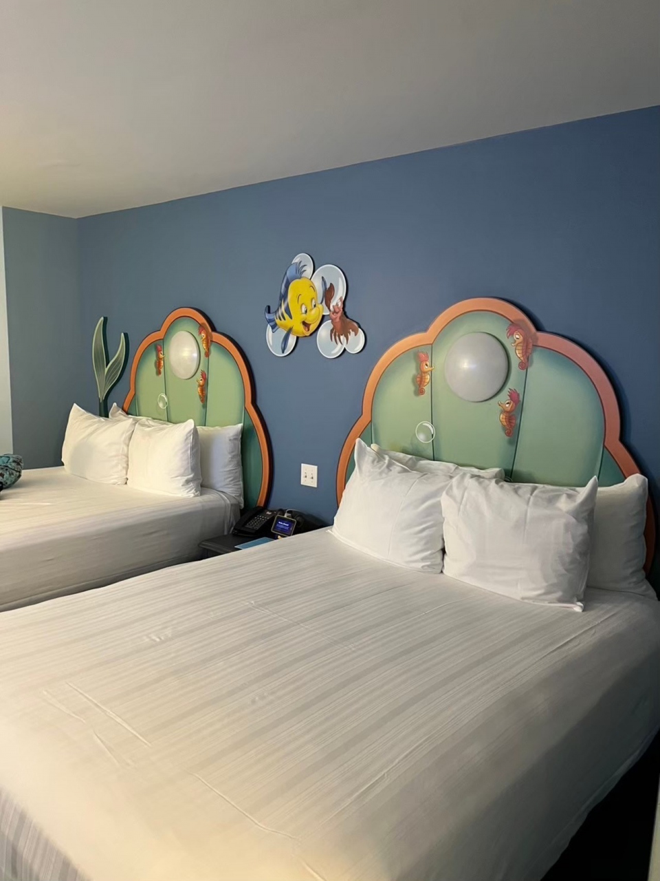 今回初めての海外ディズニーホテルに宿泊!そして大好きなアリエルのホテル!そこに今回は泊まることができました!外観から内装まで全てがディズニーに溢れていて大好きなアリエルのお部屋ではかわいいキャラクターたちがお出迎えしてくれていました!沢山写真を撮って大満足でした!写真スポットがたくさんあって半日遊べました!