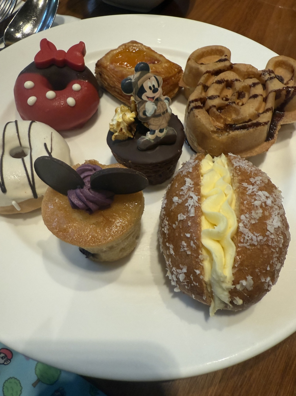 初めての海外ディズニーホテル!とても泊まりたかったホテルでしかも朝食つきでした!朝食は種類豊富でとても美味しく、味付けも最高でした!甘いものも辛いものもご飯ものもあってお腹いっぱいでした!グリーティングではグーフィとドナルドに会えました!急かされすぎず自分のタイミングでグリもできたので良かったです!