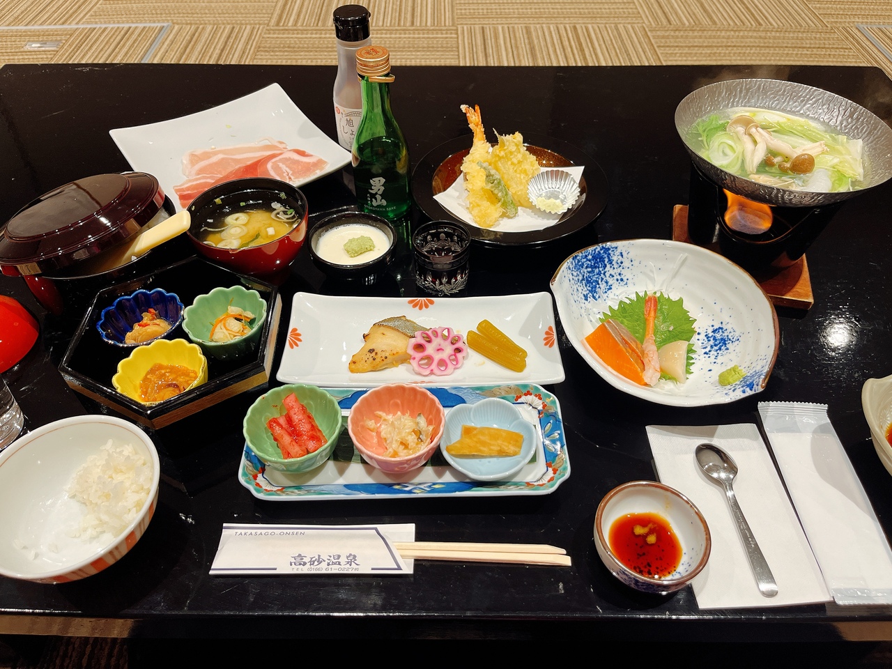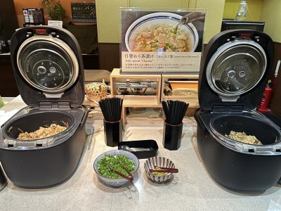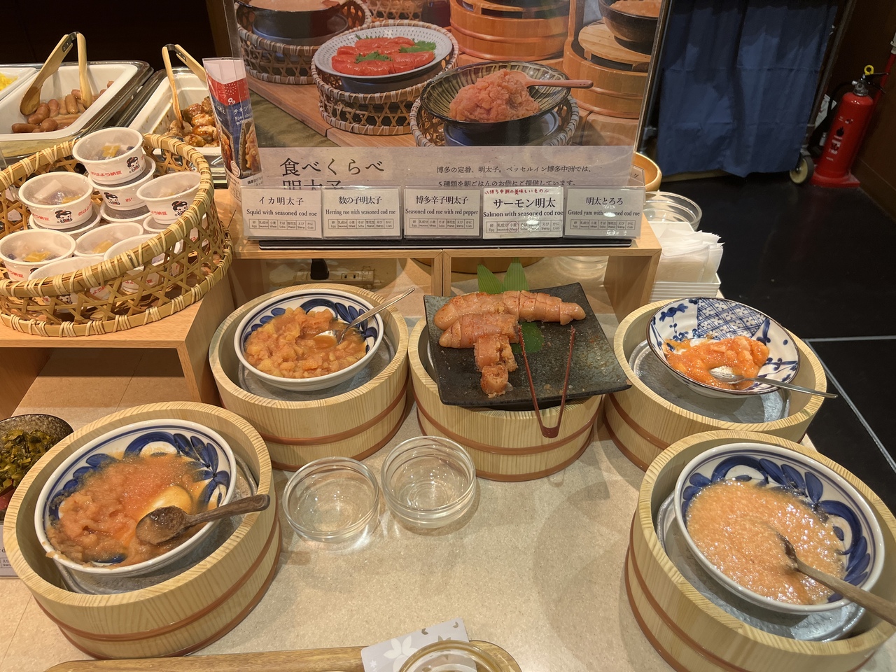 チェックイン後のデザートやドリンク、夜食などは他の店舗と同じような感じです。朝食は趣向を変えた明太子バイキングと水炊きなどの鍋物がありますが、それ以外に高価な食材を使った地の物はありませんでしたので朝食は期待外れでした。