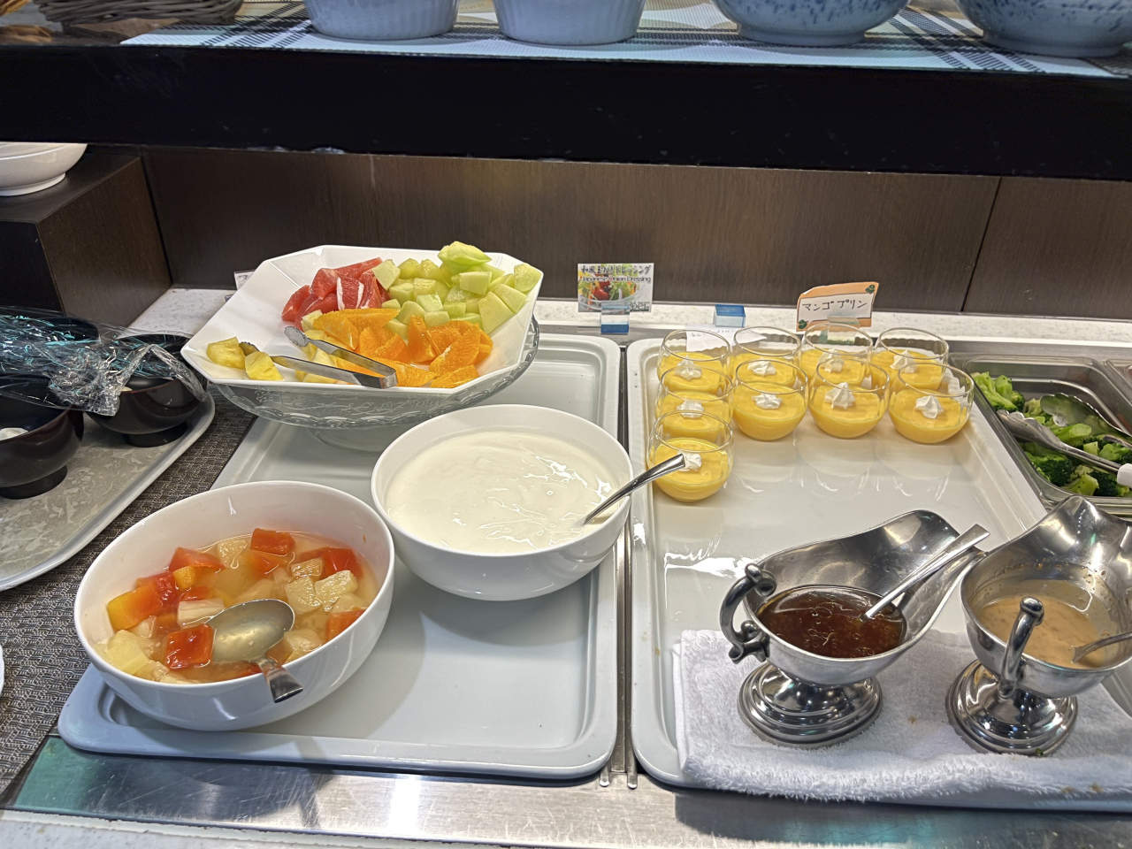朝食の時間も早くから開場するのもメリットの一つです。地のものが沢山並ぶという感じではありませんでしたが、メロンをはじめとするフルーツや、デザートに力が入っている印象でした。