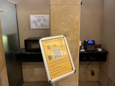 フロントには電子レンジや宅配便の伝票発行機があります。他に外貨自動両替機もありました。