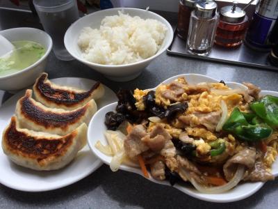 キクラゲ卵炒め定食で、餃子は通常サイズ