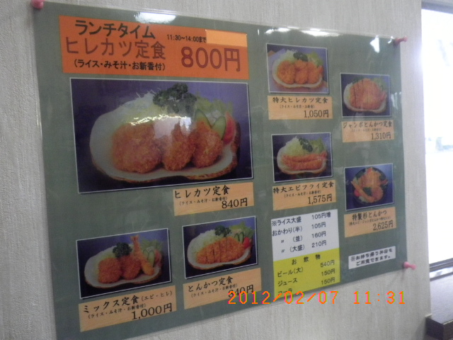 ランチ定食800円ながら、サクサク・やわらかなヒレカツが一番人気です。