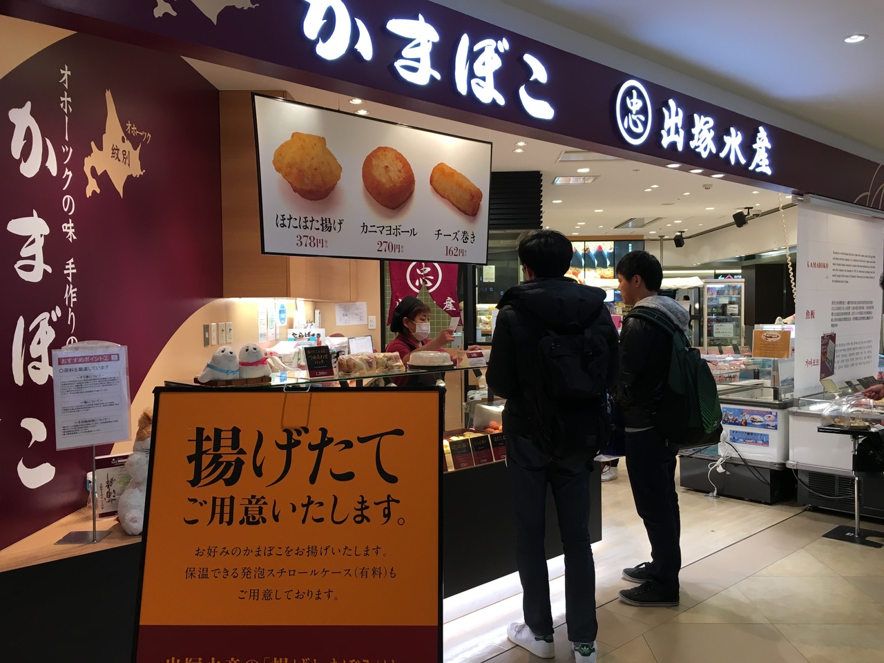 海産物や練製品であるカマボコを扱っていますが、フライヤーがあるので、その場でアツアツのカマボコを食べたり、お土産に持ち帰る事ができます。