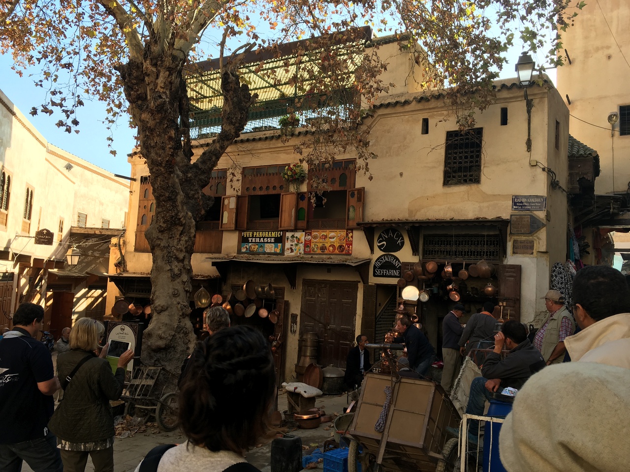 フェズのメディナの中心地で、いつも広場に鍛冶屋さんが階段を仕事場所にしており、トンカントンカンと鍛冶の音が響いています。