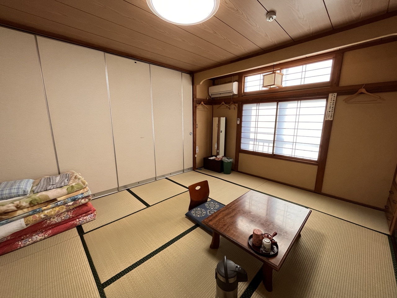 上下浜駅から海方面に10分ほどにある通年民宿です。通年とは、日本海沿いにあるため海水浴シーズンだけでなく、一年中予約があれば営業しますよ的な意味だと思います。