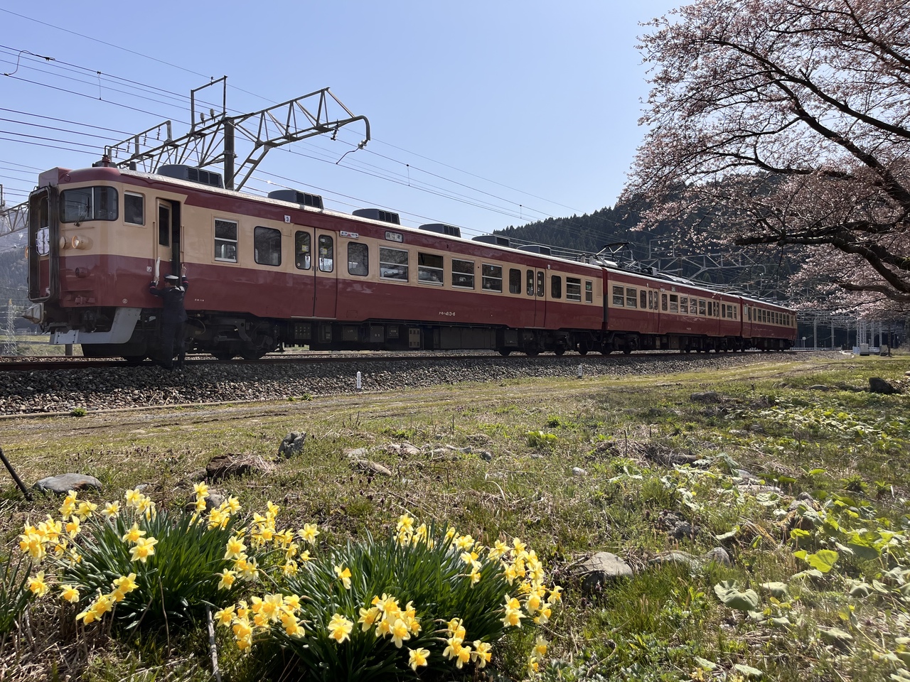 雪月花やJR直通特急しらゆきを除き基本はロングシートの車両ですが、土日の朝一往復のみ、413系(一部455系)の快速が直江津~妙高高原間を運行しています。