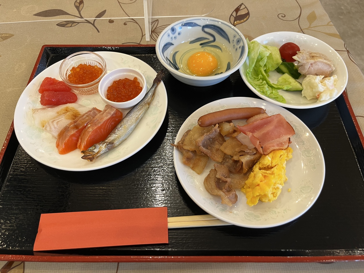 朝食が1000円強と、この手のビジネスホテルにはしては高めですが、海鮮やジンギスカンなどが並びます。ただし、競争で朝食を売りにしたホテルほど期待しない方がいいと思います。- 旅行時期