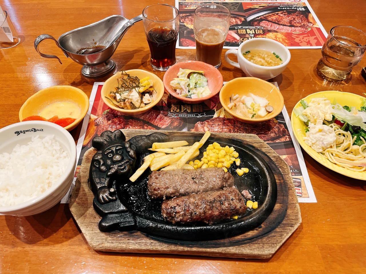 豊富かつ手の込んだサラダバーがブロンコビリーのイチオシです。アプリを入れるとステージごとにポイントが貯まるほか、スクラッチカードの配布などで実質的にジェラートバーとドリンクバーが毎回一人分無料で使えます。