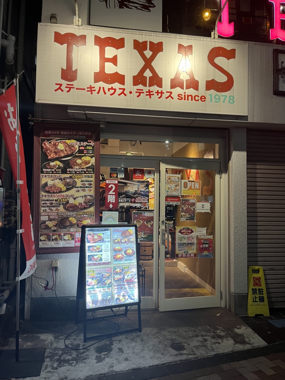 早稲田大学の東伏見グランドがある、西武新宿線の東伏見駅南口のロータリーに面してステーキハウステキサスはあります。