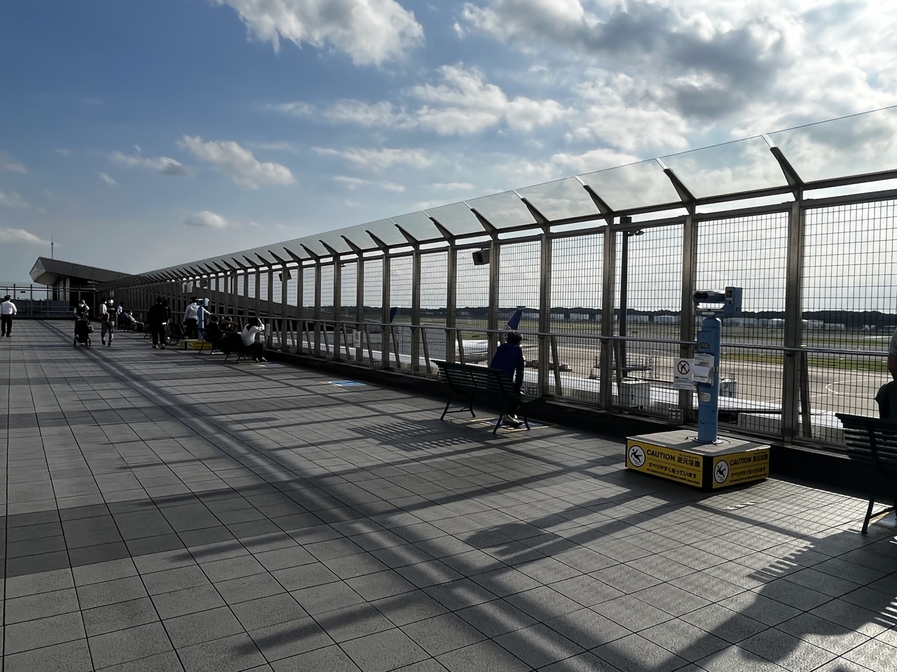 成田空港第1ターミナル5階の展望デッキです。スポットと誘導路を挟んで滑走路があります。第二側よりも滑走路が長く、また誘導路の制約が少ないため離発着回数はこちらの方が多く、メインに利用されているのでウォッチャーも多いです。また展望デッキの出入り口近くにはローソンやレストランがあり、第2ターミナルの展望デッキよりも使い勝手が良いです。