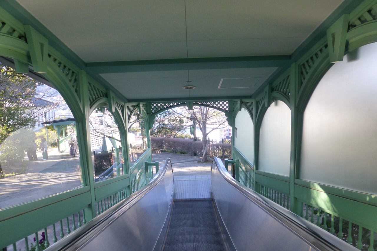丘陵地に広がるグラバー園へ楽に足を運んでくれました。とても役にたつ移動手段です。脇の坂道や階段を使ってアクセスもできますがほとんどの入園者はエスカレーターを使って上り、帰路は景色を眺めながら徒歩で下る方法をとっていたのだと思われます。