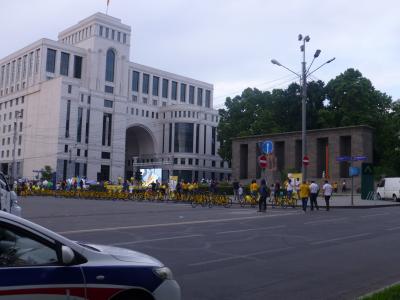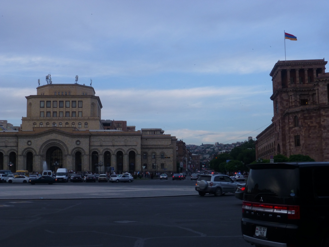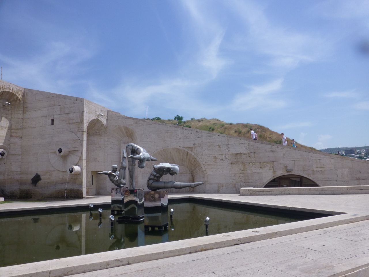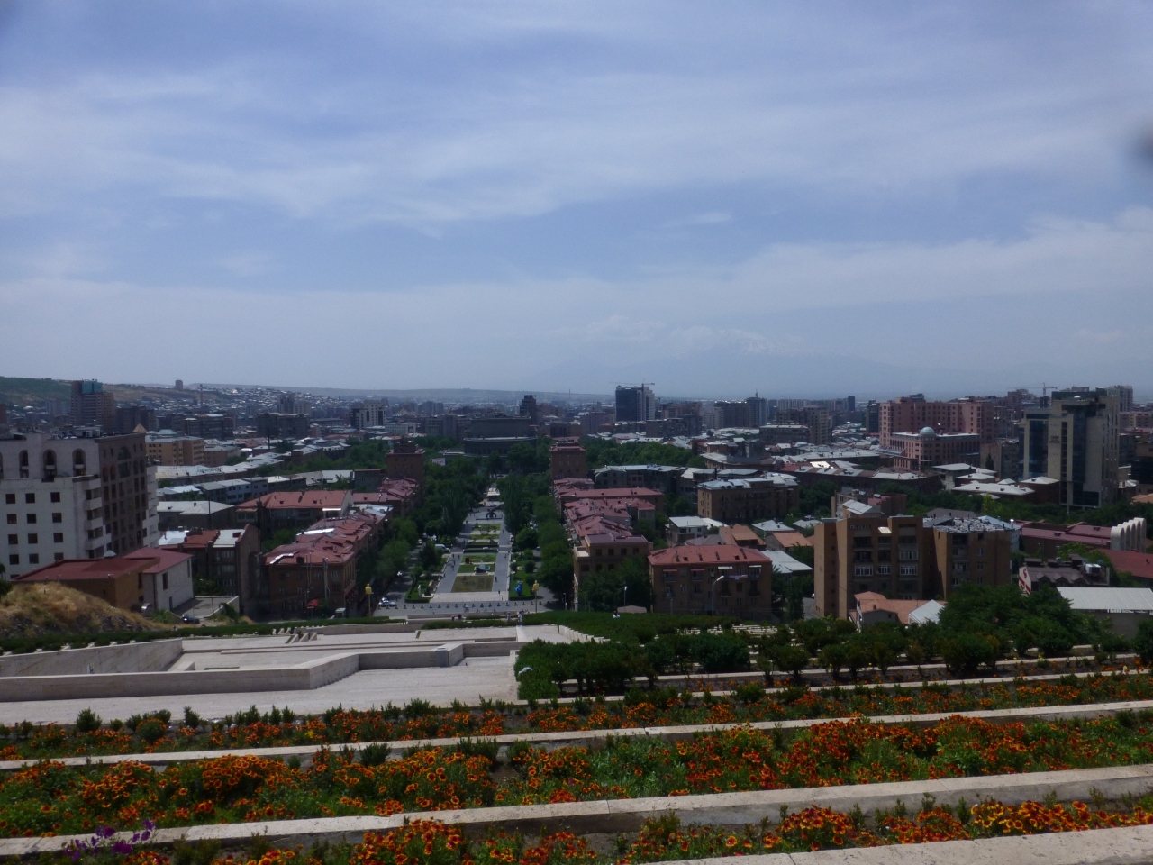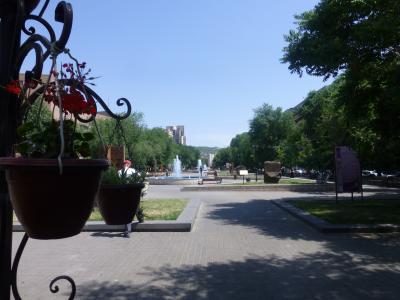 カスケードのエレベーターをどんどんと上っていくと、苦労なく到着。途中ユニークな彫像やオブジェを鑑賞しながら展望台へ近づくと、戸外には水をテーマにいくつかの彫像があります。飽きること亡く見晴らしの良い展望台へ到着。見渡すとほとんど高い建物がない方角に展望が開けていて、美しく整備された通りと町並みが見渡せます。首都エレバンを体感できる場所です。