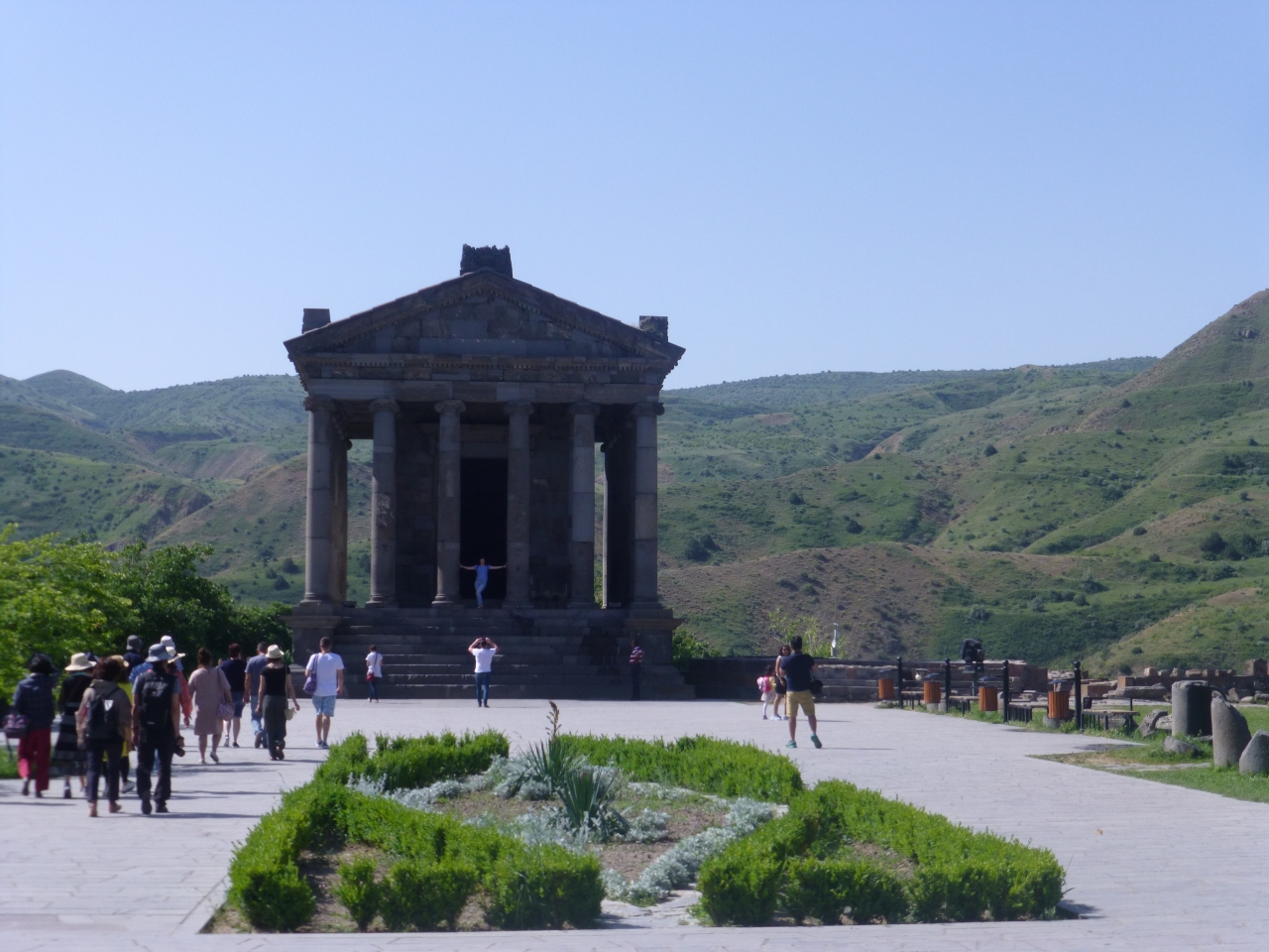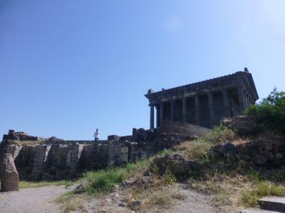 ゲガルト修道院と一緒に個人でタクシーを手配していきました。市内ホテルから片道30分ほどです。渓谷沿い走り少しずつ高度が上がって行く感じ。見晴らしの良い高台にそびえていました。周囲は破壊された痕跡のまま、神殿だけが修復されたとあります。パルテノン神殿を思わせる重厚な歴史遺産です。見応え十分。