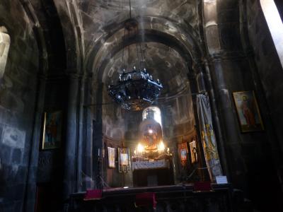 見応えある世界遺産の修道院でした。石の門をくぐり石の坂を上り、岩山くりぬいた広い教会堂は見事。機会のない時代にここまで大規模で精巧な教会を岩の中に作った僧侶達の執念を感じます。キリスト教を世界に先駈け国家宗教としたアルメニアのまさに代表的な歴史遺産を間近に見ることができました。