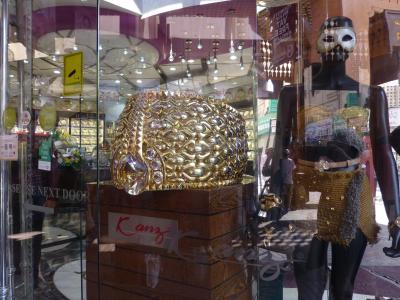距離はホテルから1きろほど。普通だったら歩けない距離ではないですが。外はとても暑かったのでタクシーで行きました。特に貴金属ショップばかりが軒を並べているわけではありません。小物や生地などの店もたくさんありました。人通りはおおくありません。ガイドブックにもある世界一大きなゴールドリング、は人盛りができていて、すぐにわかりました。何も買うものはないのですが、一応ブラブラと。