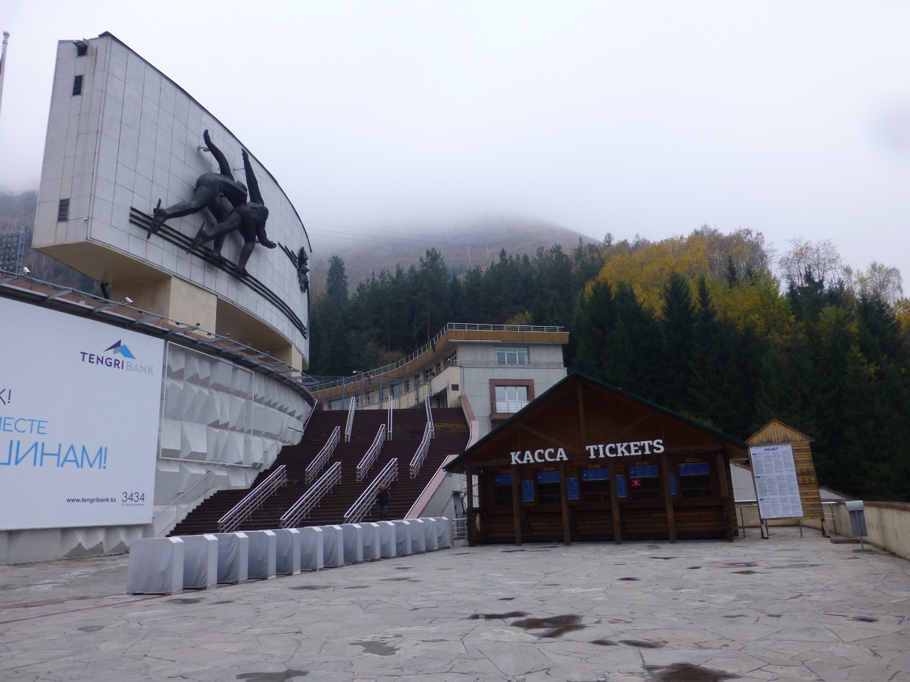 標高を上がって渓谷沿いの道を行きます。静かなドライブは快適でした。ただ、現地についてもこれといって特にみるものはありません。競技期間中ではなかったにも関わらず多くの観光客がきていました。団体ツアーなのか、帰りの時間までも店も少ないので退屈そうにしていました。周囲を歩くと結構楽しかったのですが・・・