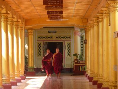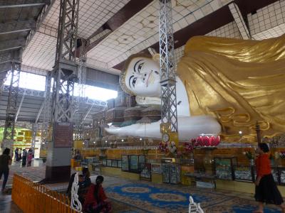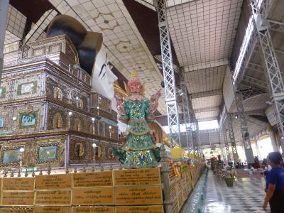 バゴー観光中、最も賑わっていた場所。大きさではミャッターリャウン寝仏のほうが大きいようですが細工のすばらしさでは最高です。じっくりと遠目からでも飽きずに見られます。特に足の裏やまくらの銀にかがやく細工は素晴らしいです。国内の観光客も多く家族ずれで賑わっていました。