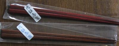 さんまちの混雑に参ってしまい、宮川沿いに並行している空いた道を歩いていると「職人の店」と書かれたお店発見。店と言ってもドア前に商品がいくつか置かれているだけのものでしたが、この春慶塗のお箸は1組500円でした。