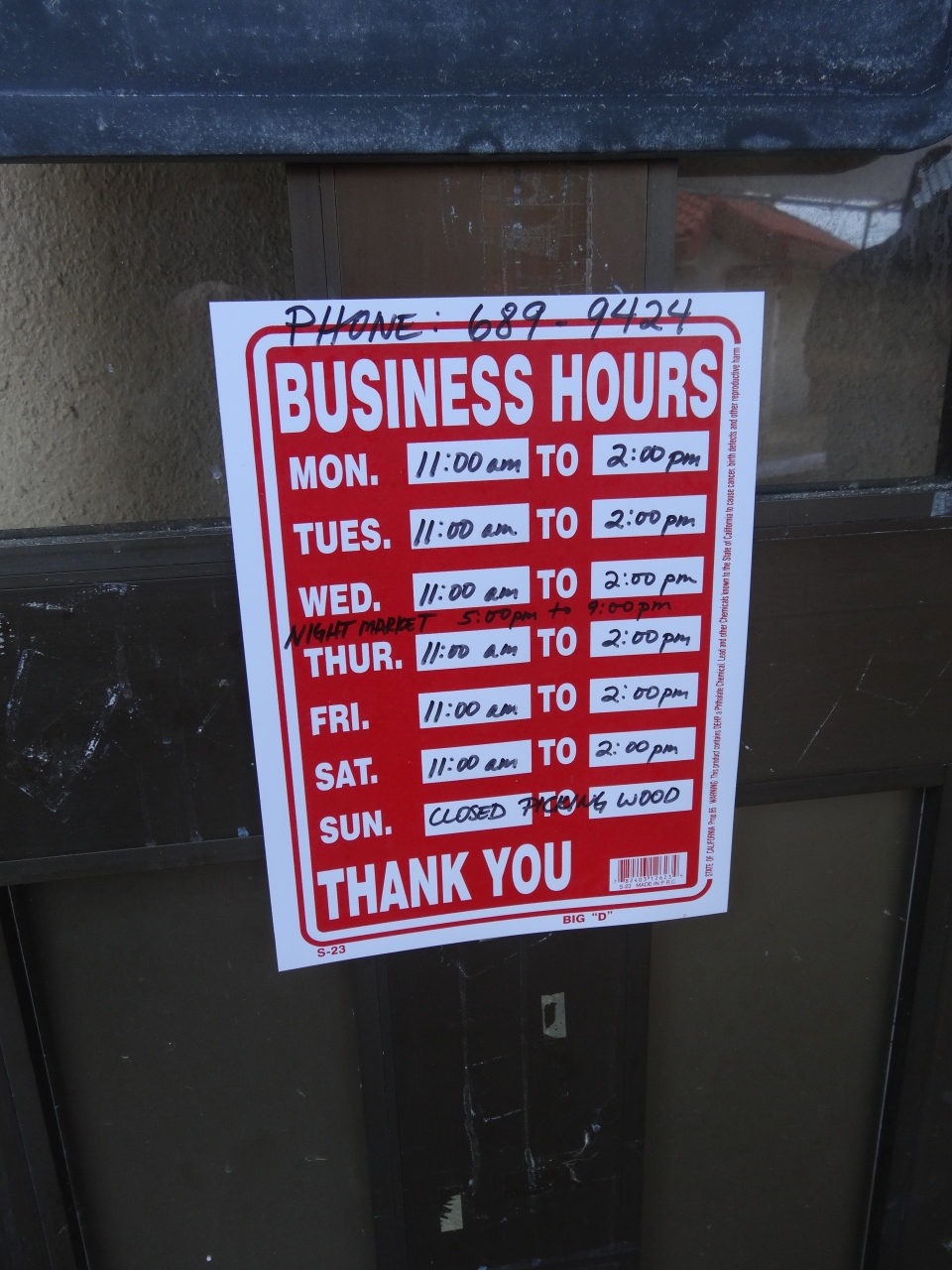 営業時間は11-14時、水曜は17-21時も営業してます。日曜日はお休み。