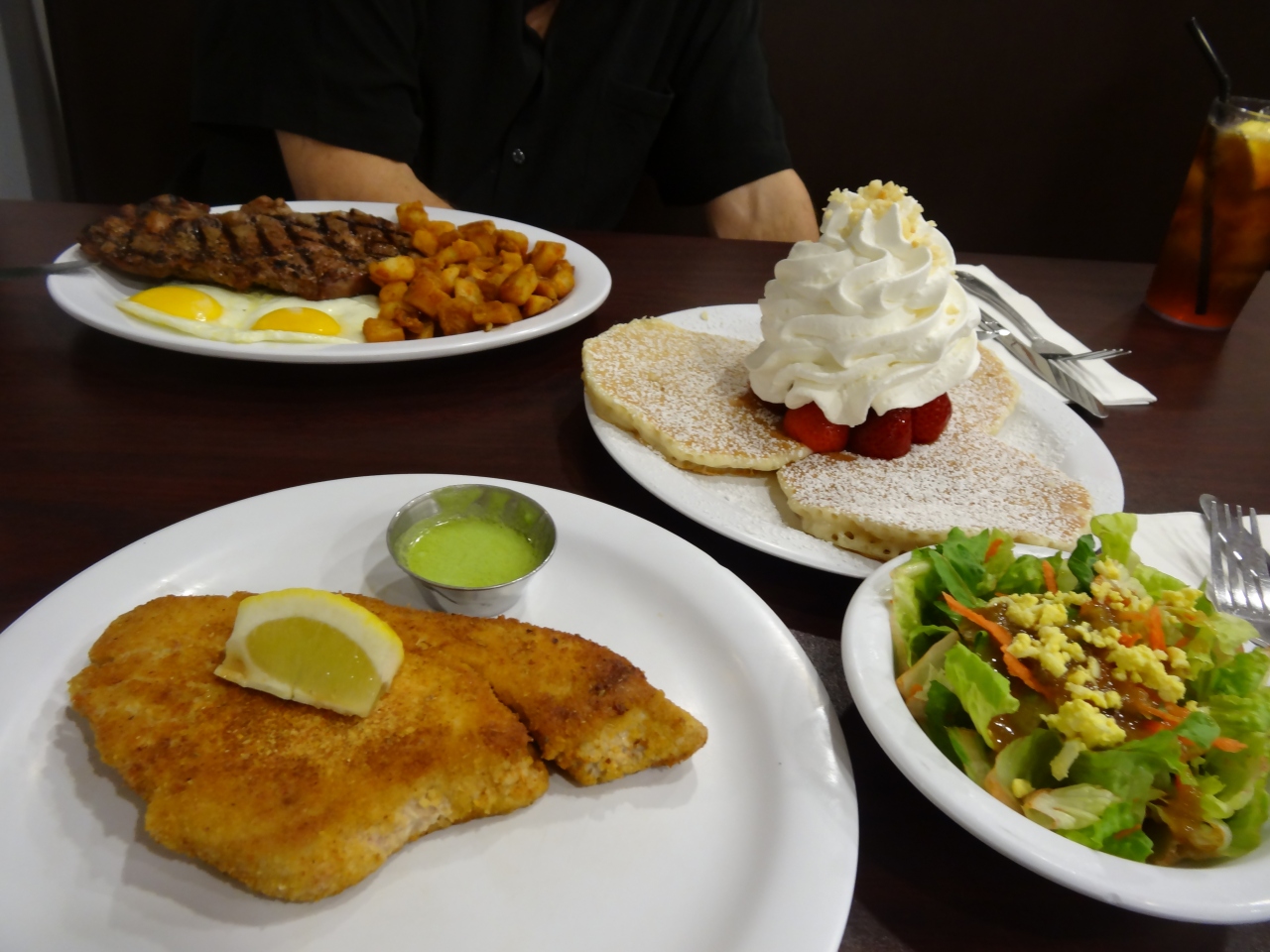 私はワイキキ店の生クリームてんこ盛りのパンケーキにドン引きしたんですけど、グアムは少し控え目です。