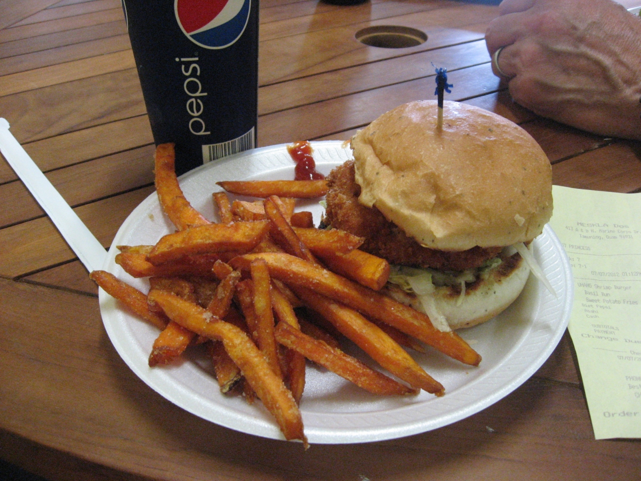 メニューはいろいろありましたが、私たちはエビーバーガーを注文。