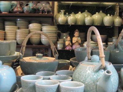左側がセラドン焼きの食器、右側は木製品その他って感じになってますが、食器は結構いろいろ揃えてあって目移りします。