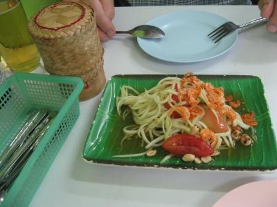 ソムタムもおいしい。ちょっと辛いのでもち米が良い仕事しまっせ。