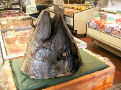中は冷凍マグロの店が一番多いけど、鮮魚、干物、乾物などが複数の店で売られています。八百屋さんも1軒だけどありました。