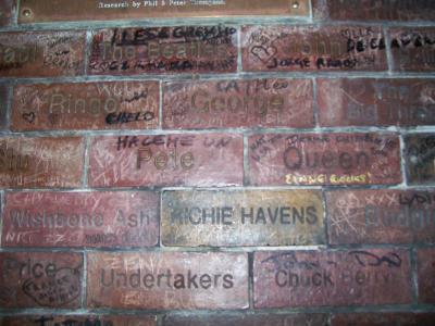 向かいの壁には今まで出演したバンドの名前が刻まれていました。- 旅行時期