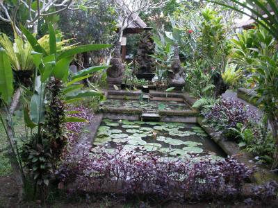 運河沿いの家をいくつか繋げてホテルにしてあり、中庭にはアートギャラリーと銘打った一角にモダンアートが並んでます。