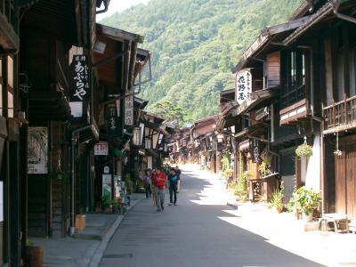 車は奈良井駅から町中へは入れないので、比較的広めの道は歩行者天国。