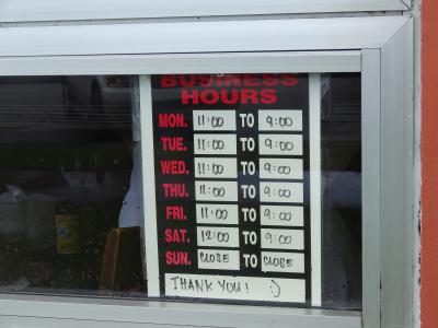 持ち帰り専門なんで、容器はプラスチックのお弁当箱だし、何のサービスもないけど、安くて美味しいので、夫はココのお肉を食べるためにグアムに行く事にしているそうです。- 旅行時期