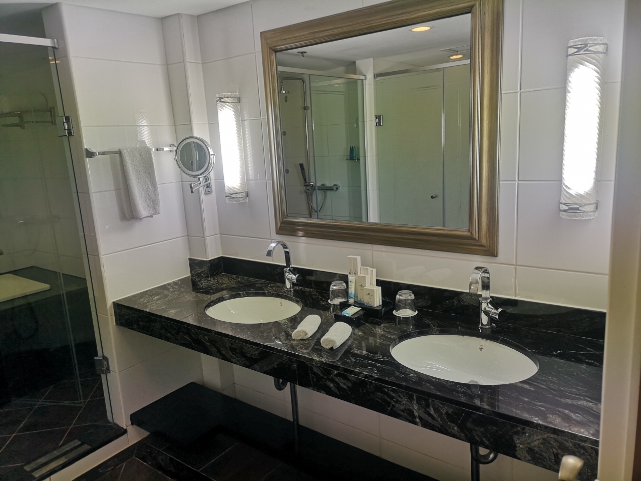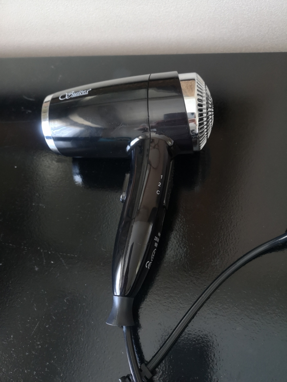 ドライヤーもありましたが、よくある壁にコードで固定されているタイプではなかったので、ほかの部屋に持っていって使うことができたのでバスルームを占有する時間が少なくて助かりました。