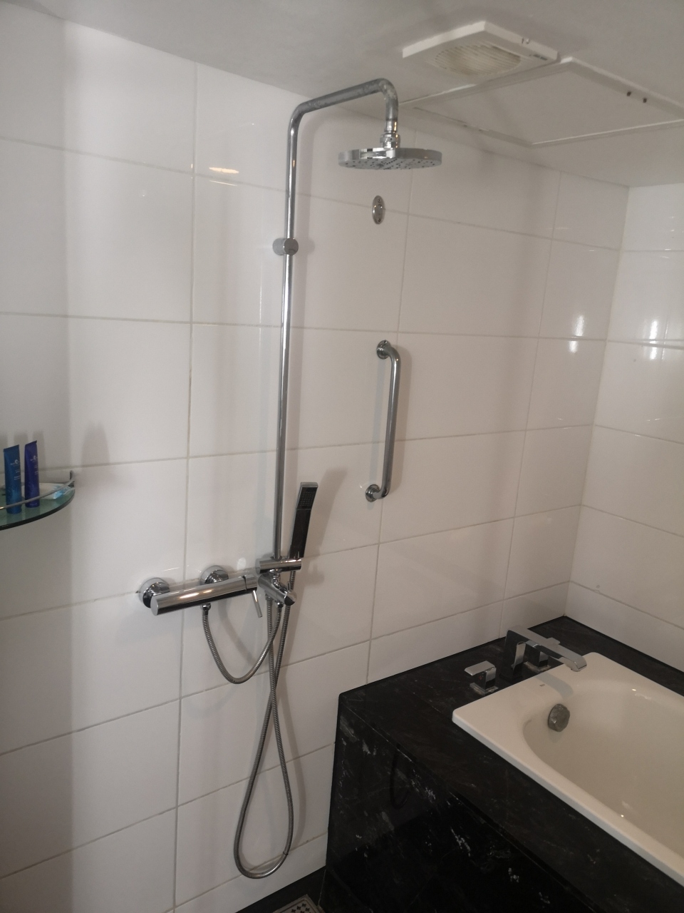 シャワーの水圧も十分で、シャワーヘッドの高さが変えられて手に持つこともできるのでよかったです。