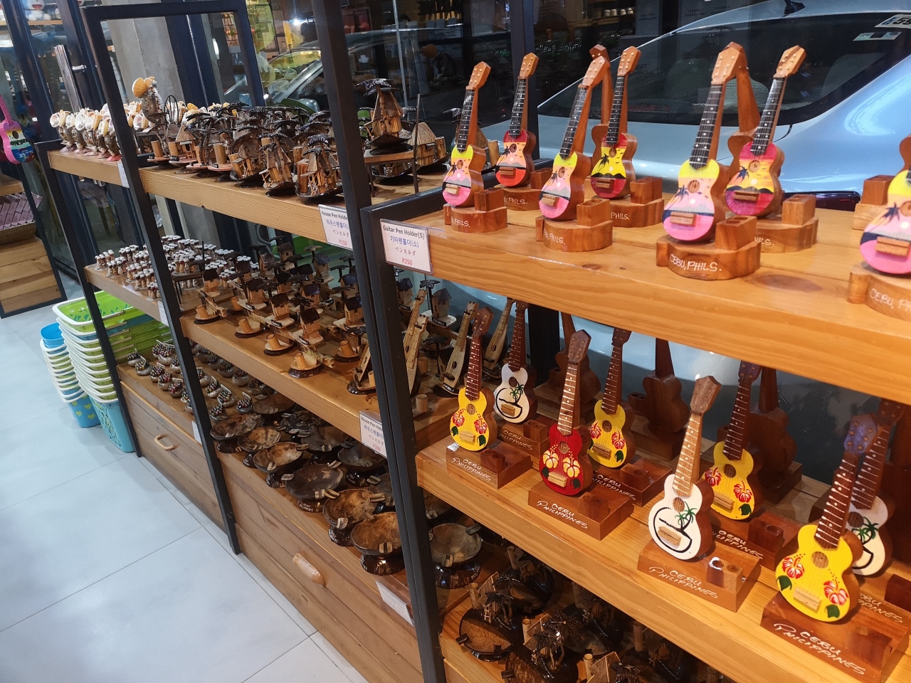 その他定番の置物系やアクセサリー、マグネットやキーホルダー、ミニギター、パール製品、モリンガなどがあります。