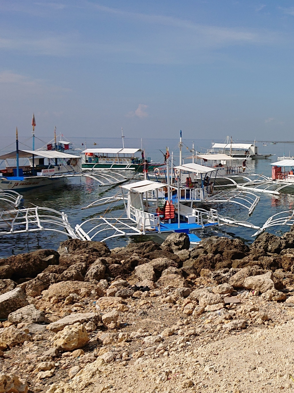 島の周りでは浅瀬を行ける渡し船の順番待ちするバンカーボートがズラっと取り囲んでいました。