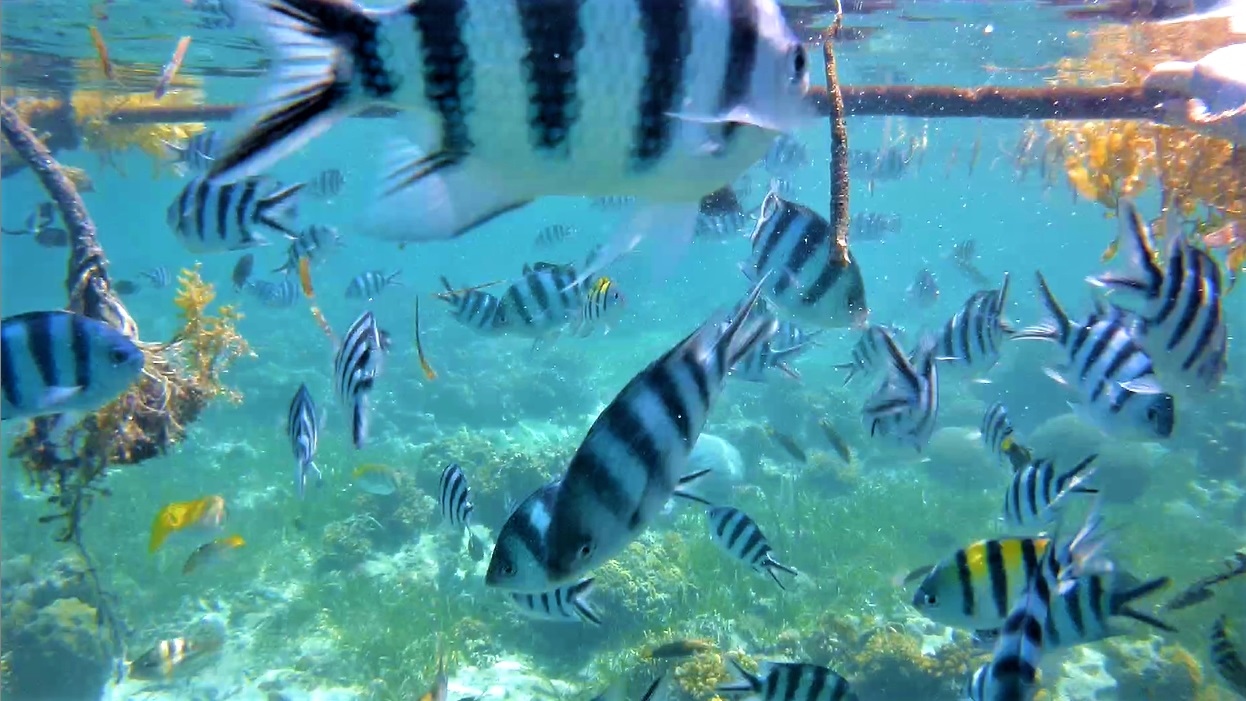 ちょっと水面に顔を入れるとすぐにたくさんの魚が見えます。