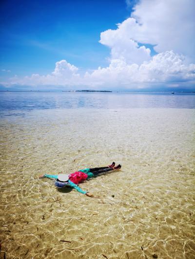 島内をしばらく歩くとすぐに上陸した側とは反対の海に出ますが、ずーーーっと見渡す限り足首くらいの浅瀬で写真撮るにはいいです。