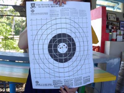 女性は銃の種類がひとつしか選べないと言われ、1発120ペソの銃になりました。1発100ペソで30発3000ペソの予定だったのにちょっと高くなりましたがとても楽しかったです。